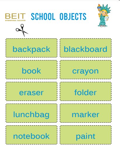 HOUSEHOLD & SCHOOL OBJECTS BINGO